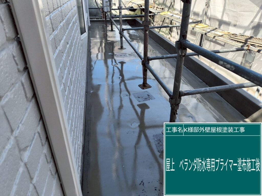 屋上・ベランダに専用プライマーを塗布します。