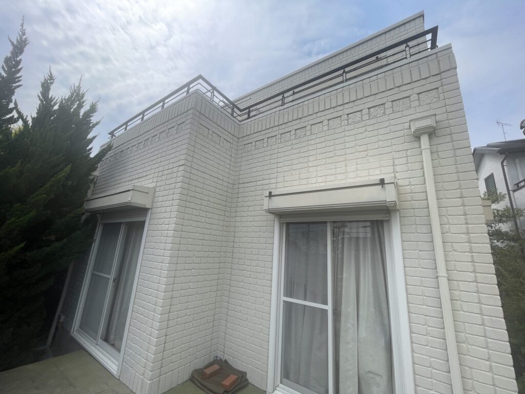 K様のお家は、築40年の積水ハウスの3回目の外壁屋根塗装工事となります。外壁材は積水ハウスが開発したダインコンクリートという高機能なオリジナルの外壁材です。独自の独立気泡構造とオートクレーブ養生により、高い強度、耐久性、断熱性、耐火性、を実現しています。