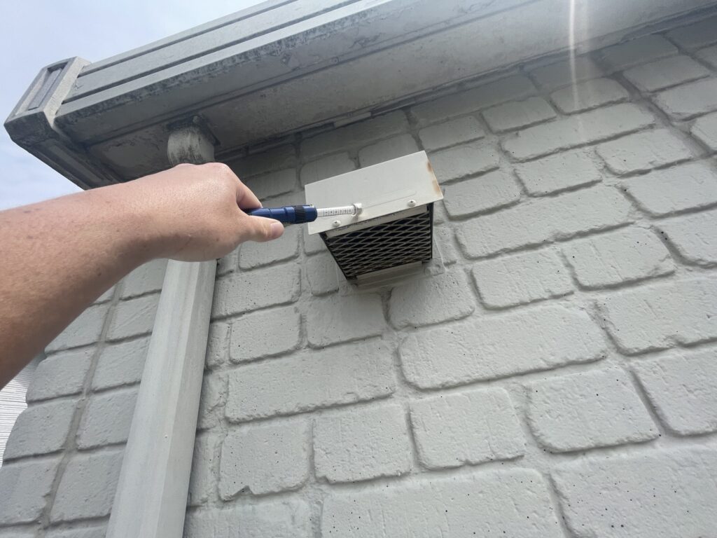 竪樋の素地調整を行います。