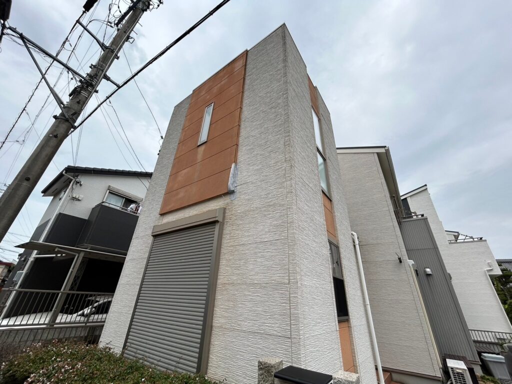 | 使用商材・建材 | 外壁: ダイヤスーパーセランフレックス(2液型水性/超耐久性無機塗料/シーカジャパン社) 屋根: 無機エクスカリバーMZ-R(2液型弱溶剤/バーテックス無機塗料/CPJ・~クリスタルペイントジャパン~) 付帯 : 4Fイージスガード(2液型弱溶剤/無機配合型4フッ化フッ素塗料/CPJ・~クリスタルペイントジャパン~) 目地&開口部: オートンイクシード(超高耐久・高耐候シーリング材/オート化学工業) |